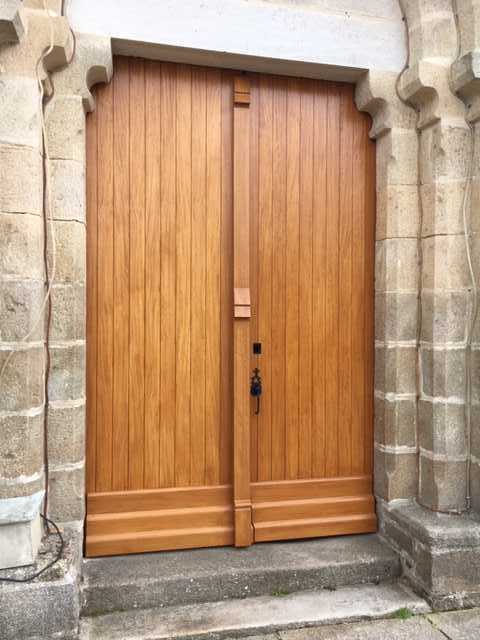 Installation d'une porte d'église sur-mesure en bois